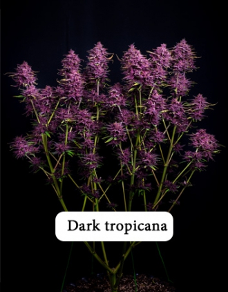 สายพันธุ์ดาร์กทรอปิกาน่านี้ เป็นสายพันธุ์มีเอกลักษ์ที่โดดเด่นสวยงามมาก นอกจากมีสีที่เป็นสีม่วงอย่างชัดเจน ก็ยังมีกลิ่นที่หอมเป็นเอกลักษ์ที่คล้ายๆกลิ่น ดอกไม้ สมุนไพร เเละกลิ่นเบอรี่ ผลไม้ซึ่งมีกลิ่นออกหวานๆ ส่วนเอฟเฟคจะช่วยในเรื่อง บรรเทาอาการปวด ช่วยให้ผ่อนคลาย สมองโล่ง ต้านความวิตกกังวล ช่วยในเรื่องอาการนอนไม่หลับ.