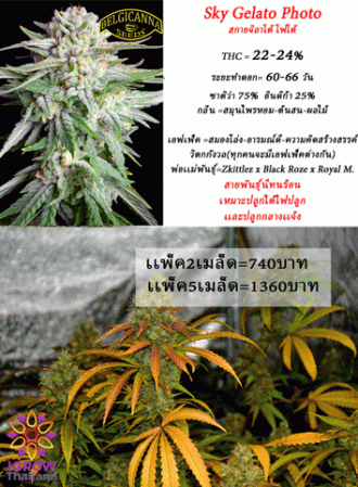 สกายจิลาโต้ โฟโต้เพศเมีย100เปอร์เซ็นTHC22-24%